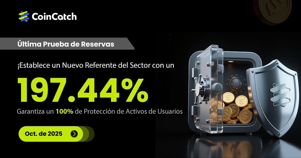 CoinCatch ha finalizado con éxito la actualización de su Prueba de Reservas (PoR) para Octubre de 2025. Al 9 de Octubre de 2025, el ratio de reservas total de CoinCatch se situaba en el 197.44%. El desglose más reciente del ratio de reservas se detalla a continuación: