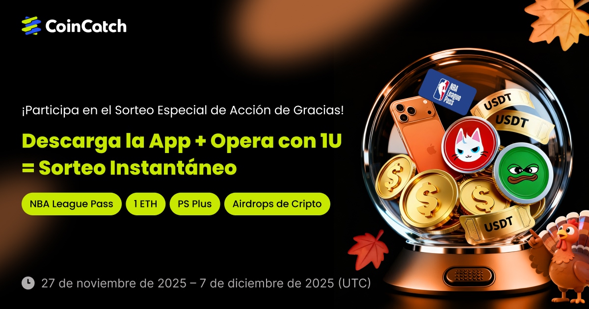 ¡Este Día de Acción de Gracias, CoinCatch te trae un festín de recompensas! ¡Sumérgete en nuestro enorme pozo de premios! Desde dispositivos de lujo hasta airdrops de criptomonedas reales por valor de $3,000 💸. ¡Únete ya!