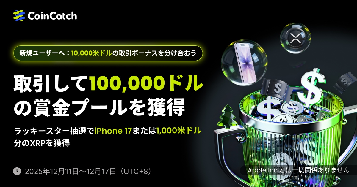 デジタル資産価格は高い市場リスクと価格変動を伴います。投資経験、財務状況、投資目的、リスク許容度を慎重にご検討ください。CoinCatchは、発生する可能性のある損失について一切責任を負いません。この記事は金融アドバイスではありません。