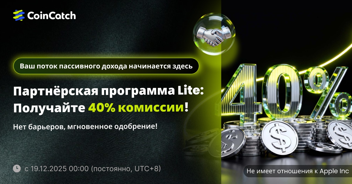 Нажимая кнопку «Присоединиться сейчас» или принимая участие в партнерской программе CoinCatch Affiliate Program Lite, вы подтверждаете, что прочитали, поняли и согласны соблюдать настоящие Условия.